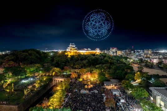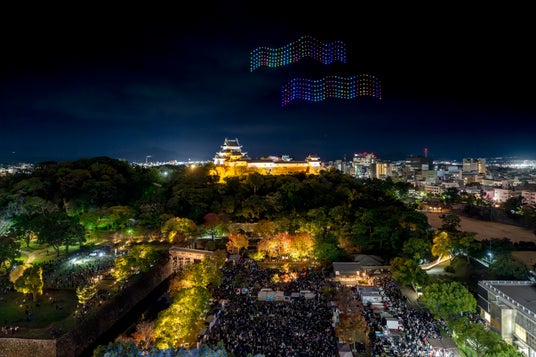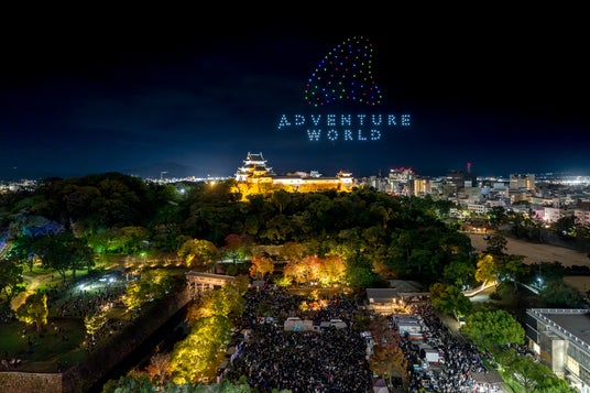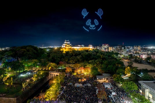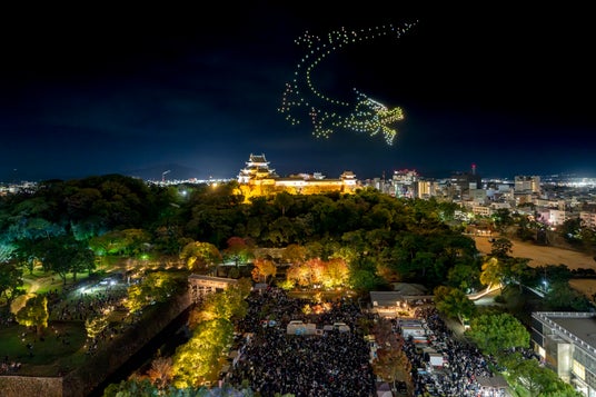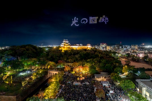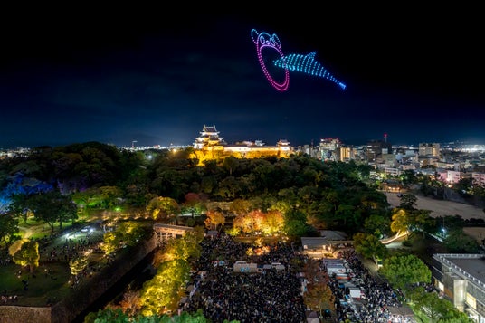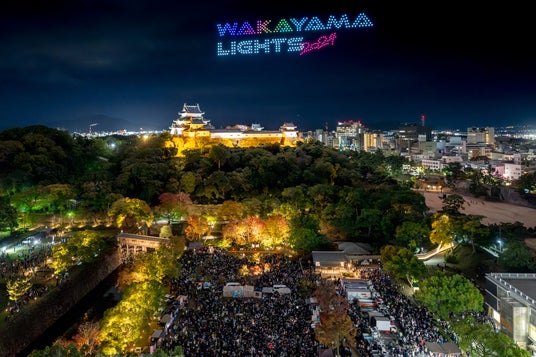 和歌山城とドローンショーコラボ!夜の和歌山城公園を光で彩る「和歌山城~光の回廊~」開幕記念イベントで和歌山県内最大規模となる400機ドローンショーを開催