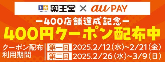 ⇒au PAYユーザーへ400円割引クーポン配布!