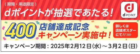 なお、上記2店舗は同日オープンとなり、出店数は401店舗となりました。