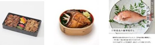 商品名:ぶりかまめし、崎陽軒北陸シウマイ入り源北陸新幹線弁当/富山県、贅沢能登牛と能登豚の弁当、プレミアム紅ずわいがに棒寿し/石川県、敦賀真鯛入りお刺身盛り合わせ/福井県