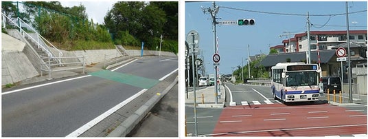 図3.BRT専用道内に存在する横断指導線(左)や一般道交差部(右)
