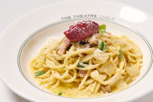 15年連続ミシュラン1つ星、"最も予約の取れない"と称される銀座のイタリアンレストラン「AROMAFRESCA(アロマフレスカ)」の原田慎次シェフがメニューを監修。骨付き仔牛すね肉を丁寧に煮込んだ濃厚な「オッソブーコ」、鮮魚とあさり、ムール貝を贅沢に使った「アクアパッツァ」など、郷土料理を現代の東京に合わせてアレンジした一皿をお届けします。また、東急シアターオーブにちなんだ“ミュージカルの転換のような白から赤への変化”がコンセプトのシグネチャーメニュー「デリカートナポリタン」もご用意。自分で仕上げるスタイルが楽しい特別感のある逸品です。