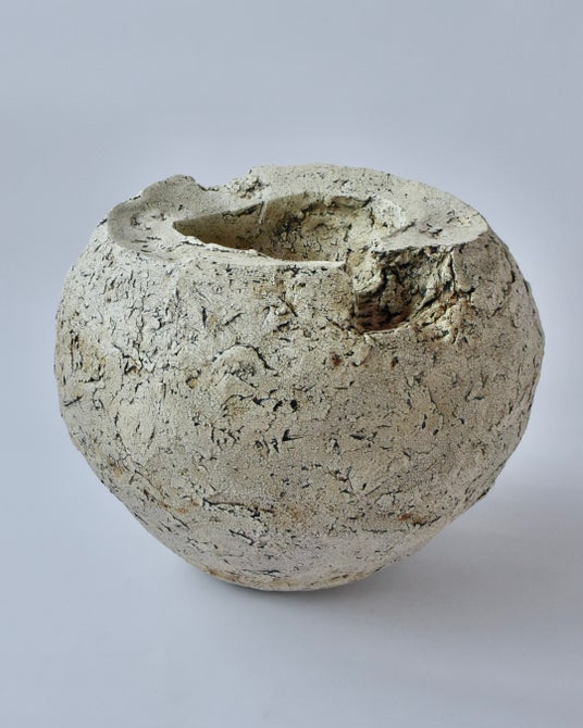 時を経て自然が生み出した景色や使い込まれた古道具の佇まいなど、自身が心地よいと感じるものからインスピレーションを受けて作陶に励む中根氏。「時間を感じるもの」が好きで「窯の中のどのような景色が生まれるのが楽しみ」という。ヒビの表情が美しい「罅化粧」のオブジェやうつわは使い手との一期一会を期待しながら制作している作品です。