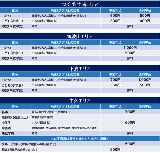 ※つくばセンター、学園並木、県南病院、ジョイフル本田 荒川沖店間のご利用は出来ません。