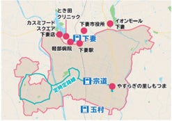 ※下妻市役所、下妻駅、とき田クリニック、軽部病院、カスミ フードスクエア 下妻店、イオンモール下妻間のご利用は出来ません。