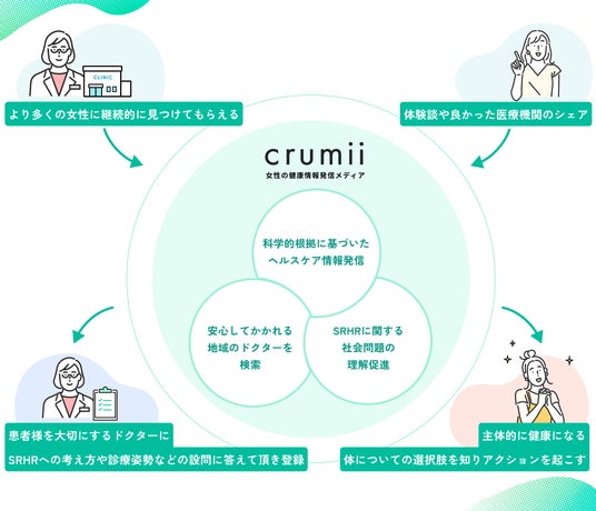 この度株式会社Crumii(所在地東京都渋谷区、代表取締役 石坂 大輝)は産婦人科医宋美玄を編集長とし、女性が適切な情報に触れて正しい選択肢を知り、自分のからだを自分で管理し、躊躇なく産婦人科にかかりつけアクションを起こせる社会を作るため、メディアを立ち上げます。