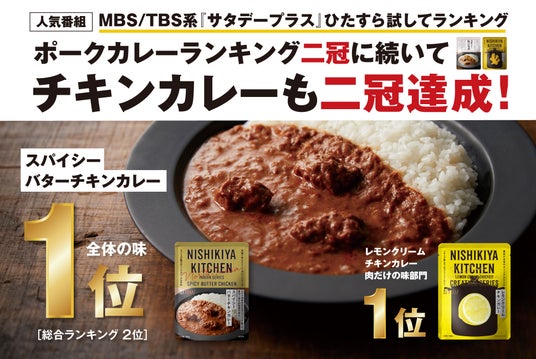 「世界の料理を『カンタン』に。」をコンセプトに掲げ、レトルトカレーやスープなどを販売するレトルト食品専門店NISHIKIYA KITCHEN(ニシキヤキッチン)(株式会社にしき食品 本社:宮城県岩沼市、代表取締役:菊池洋)の商品「スパイシーバターチキンカレー」と「レモンクリームチキンカレー」が、TBS系『サタデープラス』の大人気コーナー「ひたすら試してランキング」の「レトルトチキンカレー」部門にて、二冠を達成しました。直後から、オンラインショップと店舗で大きな反響を頂いて多くのお客様にお買い求めいただいています。商品によっては約150倍の売上を記録しました。工場を緊急でフル稼働することで増産体制をとり、引き続き、絶賛販売中です。この機会にぜひお買い求めください。