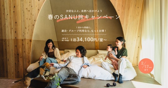 この発表を記念し、1泊から気軽に体験できる「春のSANU旅キャンペーン」を期間限定で開催します。ぜひこの機会に、大切な人とともに自然の中の暮らしをご体験ください。