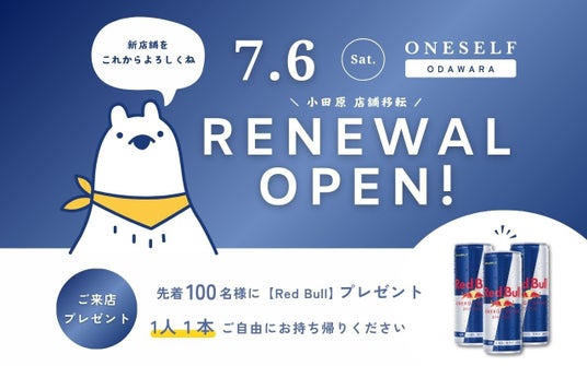 リニューアルイベントとして先着100名様へエナジードリンク「Red Bull」プレゼント