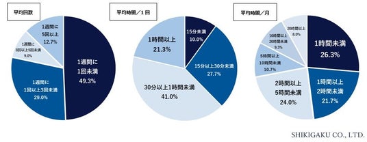 また「月間での平均所要時間」については、「1時間未満」が最も多く26.3%で、「2時間以上5時間未満」が24.0%と続きました。