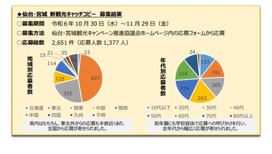 仙台・宮城観光キャンペーン推進協議会では、仙台・宮城の観光をより一層盛り上げるためのシンボルとなる新しいキャッチコピーを作成します。昨年10月から11月にかけて募集を行い、県内外から2,651件の応募がありました 。