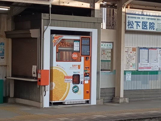 生搾りオレンジジュースの自動販売機を展開するIJOOZ(アイジュース)株式会社は、「叡山電鉄叡山本線 修学院駅」出町柳方面ホームで、生搾りオレンジジュース自動販売機の稼働を開始しました。