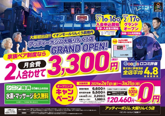 「アッティーボジム 大阪りんくう店」が 2025年2月17日(月) に イオンモールりんくう泉南1F にオープン。2025年2月1日(土) より見学・入会受付をスタート。