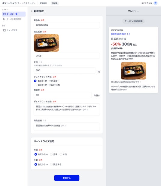 ポケットサイン株式会社(本社:東京都新宿区、代表取締役:梅本滉嗣、以下当社)は、食品ロス削減と地域経済の活性化を目的とした新サービス「ポケットサインフードロスクーポン」を開発し、1月15日より宮城県にて実証実験を開始しました。