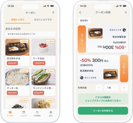 表示されるクーポンは居住地、年齢、性別といった情報をもとに最適化されており、自分に合ったクーポンが優先的に表示されるので、住民は日常生活の中で無理なく食品ロス削減に貢献でき、生活の質を向上させる新しい体験を味わうことができます。
