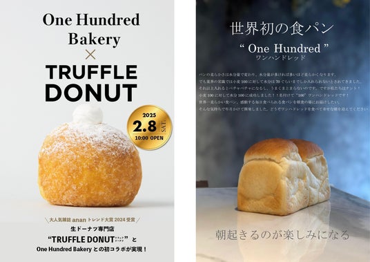 株式会社DREAM ON (本社:愛知県一宮市、代表取締役社長:赤塚 元気)は2024年2月8日(土)から、「One Hundred Bakery日吉店」で「TRUFFLE DONUT」と初めてコラボし、この期間でしか食べられないコラボメニューを提供いたします。