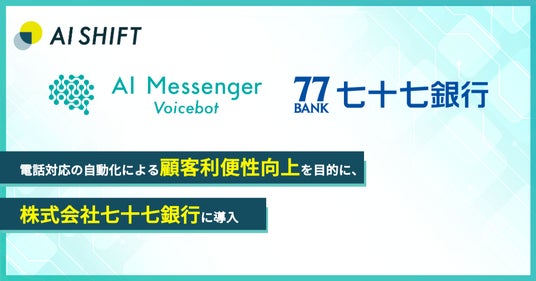 株式会社サイバーエージェントの連結子会社である株式会社AI Shift(本社:東京都渋谷区、代表取締役社長:米山 結人)は、顧客利便性の向上を図るため導入された株式会社七十七銀行(本社:宮城県仙台市、頭取:小林英文、以下「七十七銀行」)の「AI Messenger Voicebot」が導入から1年を迎えたことをお知らせします。