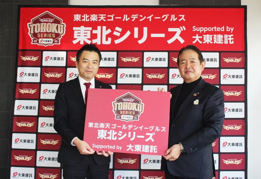 株式会社楽天野球団(本社:宮城県仙台市宮城野区、代表取締役社長:森井 誠之)は、2025シーズンの岩手県(盛岡市)、福島県(郡山市)、山形県(山形市)、青森県(弘前市)、秋田県(秋田市)にて開催する一軍公式戦主催試合において、大東建託株式会社(本社:東京都港区、代表取締役社長執行役員CEO:竹内 啓)とメインスポンサー契約を締結し、『東北楽天ゴールデンイーグルス 東北シリーズ Supported by 大東建託』として開催することとなりましたので、お知らせいたします。
