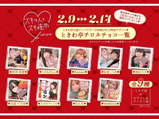 「0秒レモンサワー(R)仙台ホルモン焼肉酒場 ときわ亭」は、2025年2月9日(日)のニクの日から2月14日(金)のバレンタインデーまでの期間限定で、「飲める”黒毛和牛”すき焼き」を通常価格989円(税込)のところ特別価格500円(税抜)でご提供するキャンペーン『ときわ亭 スキな人とスキ焼肉(ハート)』を開催いたします。また、期間中、同メニューご注文のお客様に、0秒レモンサワー(R)公認アンバサダーをプリントしたオリジナルチロルチョコをプレゼントいたします。薄切りの和牛を玉子に絡めていただくすき焼き風の人気メニューで、とろけるようなバレンタインデートや仲間との飲み会をお楽しみいただき、チョコレートももらえる楽しいイベントです。
