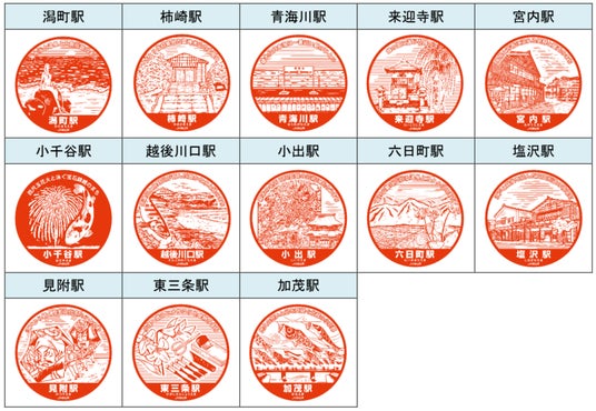 潟町駅、柿崎駅、青海川駅、来迎寺駅、宮内駅、小千谷駅、越後川口駅、小出駅、六日町駅、塩沢駅、見附駅、東三条駅、加茂駅