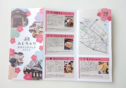 一般社団法人日本自動車連盟(JAF)茨城支部(支部長・幡谷 史朗)は、茨城大学人文社会科学部プロジェクト演習「水戸でポタリングプロジェクト(MPP)チーム」および水戸市交通政策課と連携し「みとちゃりポタリングマップ2025」を作成しました。水戸市民や観光客をターゲットに、水戸市シェアサイクル「みとちゃり」で安全な市内周遊を促そうと、自転車で訪れてみたい店舗や観光スポット、自転車の安全利用について紹介しています。