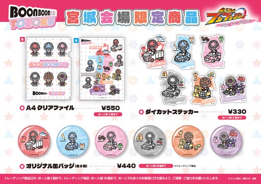 『爆上戦隊ブンブンジャー』 6人それぞれが東北6県のご当地名物と一緒にデザインされた可愛らしいグッズが3種類登場。