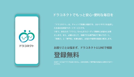 気軽に専門家にチャットで相談できるサービス「ラインコネクト」は、人とAIのスキマを埋め、ちょうどいい距離感で、よりスムーズな問題解決を実現するため「ドラコネクト」へ進化します。