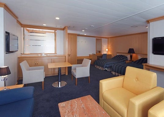船室は、リーズナブルな2段ベッド大部屋タイプツーリストAから、専用テラス・全食事付のスイートタイプまでお選びいただけます。