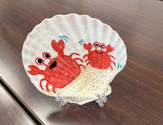 東北の海でとれたホタテ貝に絵付けや飾り付けをして自由にアレンジできます。