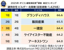実際のサービス利用者を対象に第三者の立場で顧客満足度調査を実施する株式会社oricon ME(本社:東京都港区 代表取締役社長:小池 恒 略称:オリコン)は、建売住宅を施工し、販売するビルダーについての満足度調査を実施し、2025年2月3日(月)14時にその結果を「オリコン顧客満足度(R)」公式サイト内( https://life.oricon.co.jp/ )にて発表いたしました。ランキングの結果は、下記の通りとなりました。