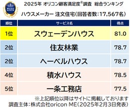 2025年 オリコン顧客満足度(R)調査 ハウスメーカー 注文住宅