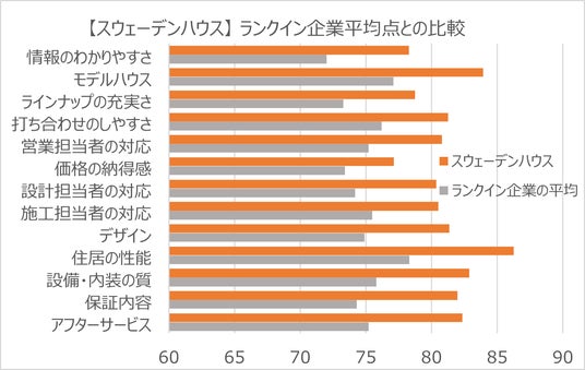 【スウェーデンハウス】ランクイン企業平均点との比較