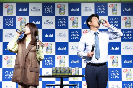 それに伴い、今回「アサヒスタイルバランス」の新CMに出演するお二人を招き、「アサヒスタイルバランス食生活サポート無糖レモンサワーノンアルコール」新CM発表会を2月3日(月)にベルサール御成門タワー ホールAにて開催いたしました。