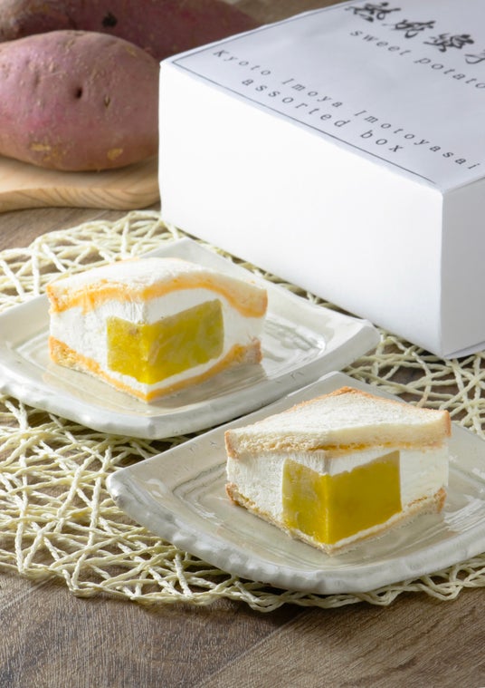 ねっとり濃厚な蜜焼き芋をたっぷりの生クリームとアクセントにカスタード、キャラメルでサンドしました。当店の新商品です!ぜひご賞味ください。