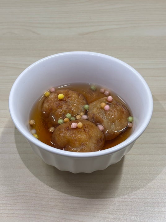 国産真昆布の豊かな旨味と、かつお節の深いコクが絶妙に絡み合うお出汁に、当店自慢のなると金時を使ったころころドーナツ(なるころ)を贅沢に浸しました。新しい味わいの驚きとともに、スタッフ一押しの一品です!