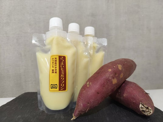 さつまいもを30%使用したさつまいもミルクプリンを手軽に食べやすいパウチタイプで作りました。