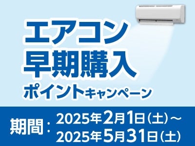 「エアコン早期購入ポイントキャンペーン」条件:期間中、対象の冷暖房エアコン(8畳以上)をコメリカードのクレジット払いでご購入いただいた方にポイントプレゼント。