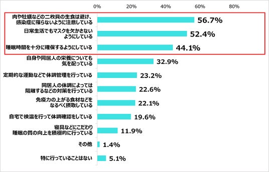 8.自身の体調管理のため、半数以上が肉と二枚貝の生食を避け、日常生活でもマスクを着用