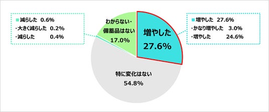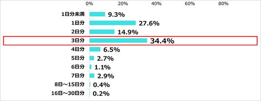 備蓄の増加量は3日分が最多(34.4%)だった。