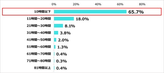 3.管理栄養士・栄養士の65.7%が、残業時間が月平均10時間以下