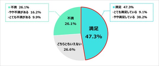 前年同時期の調査結果(44.1%)と比較すると満足度が3.2%上昇した。