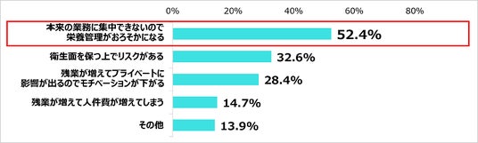 行うことでの懸念点は「本来の業務に集中できないので栄養管理がおろそかになる(52.4%)」が最多となった。