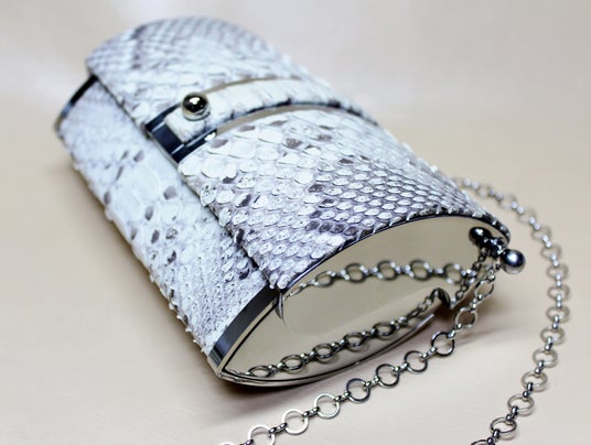 「私の中では、エキゾチックレザーでもオーストリッチやリザードのバッグや財布は富裕層の方が持つイメージ。パイソンはデザインにこだわりのある個性的な方が持つイメージです。野性味のあるエッジの利いた表現はパイソンを凌駕するものはありません。他の皮革のバッグは服を決めてからバッグを選ぶことが多いと思いますが、パイソン好みの方は、まずバッグを決めて服をスタイリングする。そんなバッグを主役にする方も多い気がします」