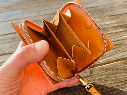 <一見シンプルな財布ですが・・。和モダンな「魅せる財布」の秘密は記事の最終章で!!>