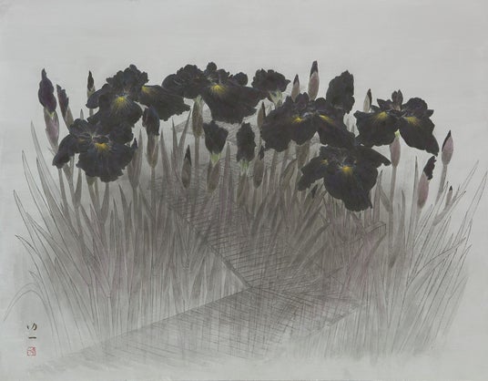 那波多目功一《八ツ橋花菖蒲》令和6年(個人蔵)