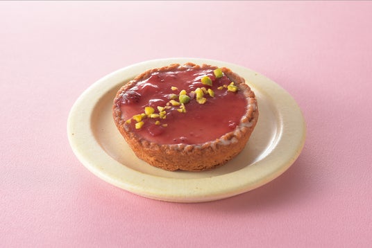サクサク食感のタルト生地の中に、濃厚なクリームチーズプリンがたっぷり入ったタルトです。クリームチーズのなめらかな食感と、いちごの甘ずっぱさのバランスが絶妙な逸品。