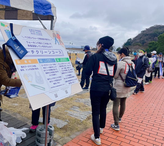 ・開催概要 「べつだいウォーク」の参加者を対象に、ビーチクリーンと海洋ごみに関するクイズラリーを組み合わせた海岸清掃のコースを設置し、全てのクイズに回答した参加者にオリジナルのサコッシュをプレゼントするイベント。