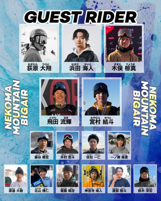 2025年2月9日~11日の間、スノーボードのビッグエア大会(*1)「NEKOMA MOUNTAIN BIGAIR by SCLOVER」を開催。国際大会で活躍する選手が集結します。2025年1月にアメリカで行われた「X Games ASPEN」にて、空中で6回転半する「2340」を決めて優勝した荻原大翔選手も参加予定です。大会の様子は一般公開され、世界で活躍する選手たちの鮮やかな技を見ることができます。
