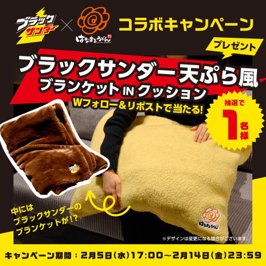 【内容】 Xの「【 讃岐 】はなまるうどん:@hanamaru_udon」、「ブラックサンダーさん【公式】:@Black_Thunder_」の両公式アカウントをフォロー。該当のキャンペーン投稿をリポストしていただいた方の中から抽選で以下の賞品をプレゼント。