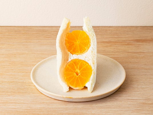 ジューシーな「みかん大福」がまるごとサンドイッチに!温州みかんを求肥で包んで、生クリームと白あんもサンドし、みずみずしい美味しさと、もちもち食感を楽しめます。店内厨房で製造しているので、作り立てのフレッシュなおいしさも魅力です。